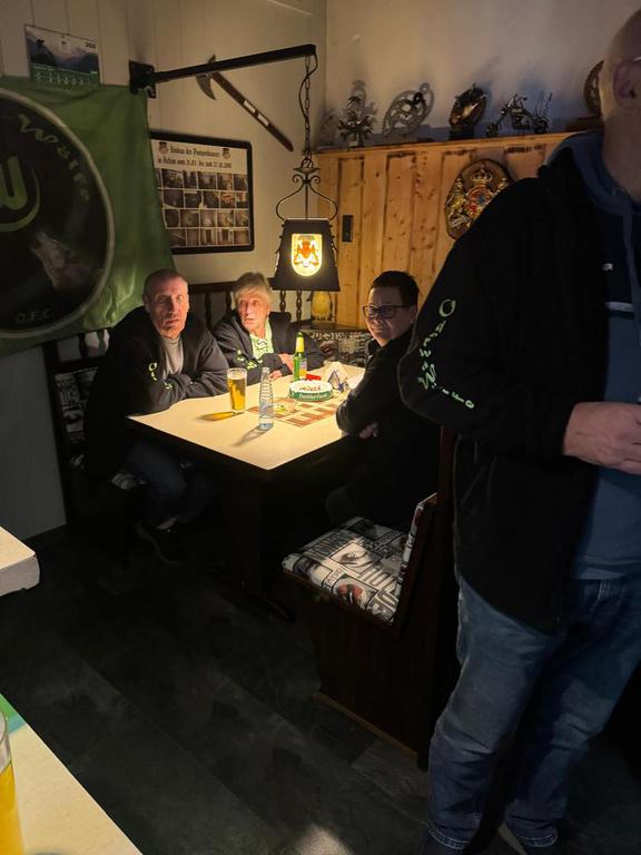 Am So. den 19.01.2014 fand unsere diesjährige Jahreshauptversammlung statt. Der Einladung folgten zahlreiche Mitglieder und der Fanbeauftrage des Vfl Wolfsburg Michael Schrader. Bei seiner Ankunft gab es gleich 3 Kisten Veltins für die Versammlung dadurch stieg natürlich gleich die stimmung der Mitglieder (dafür nochmal recht herzlichen Dank). Während der Versammlung stand er dann den Mitglieder für alle mögliche Fragen zur Verfügung die er auch in seiner lockeren Art beantwortete. Am Ende der Versammlung gab es dann noch für alle leckere Würstchen mit Salat und natürlich Veltins Bier. Zum Abschluß der Sitzung wurde noch ein Gruppenbild im Clubhaus gemacht.